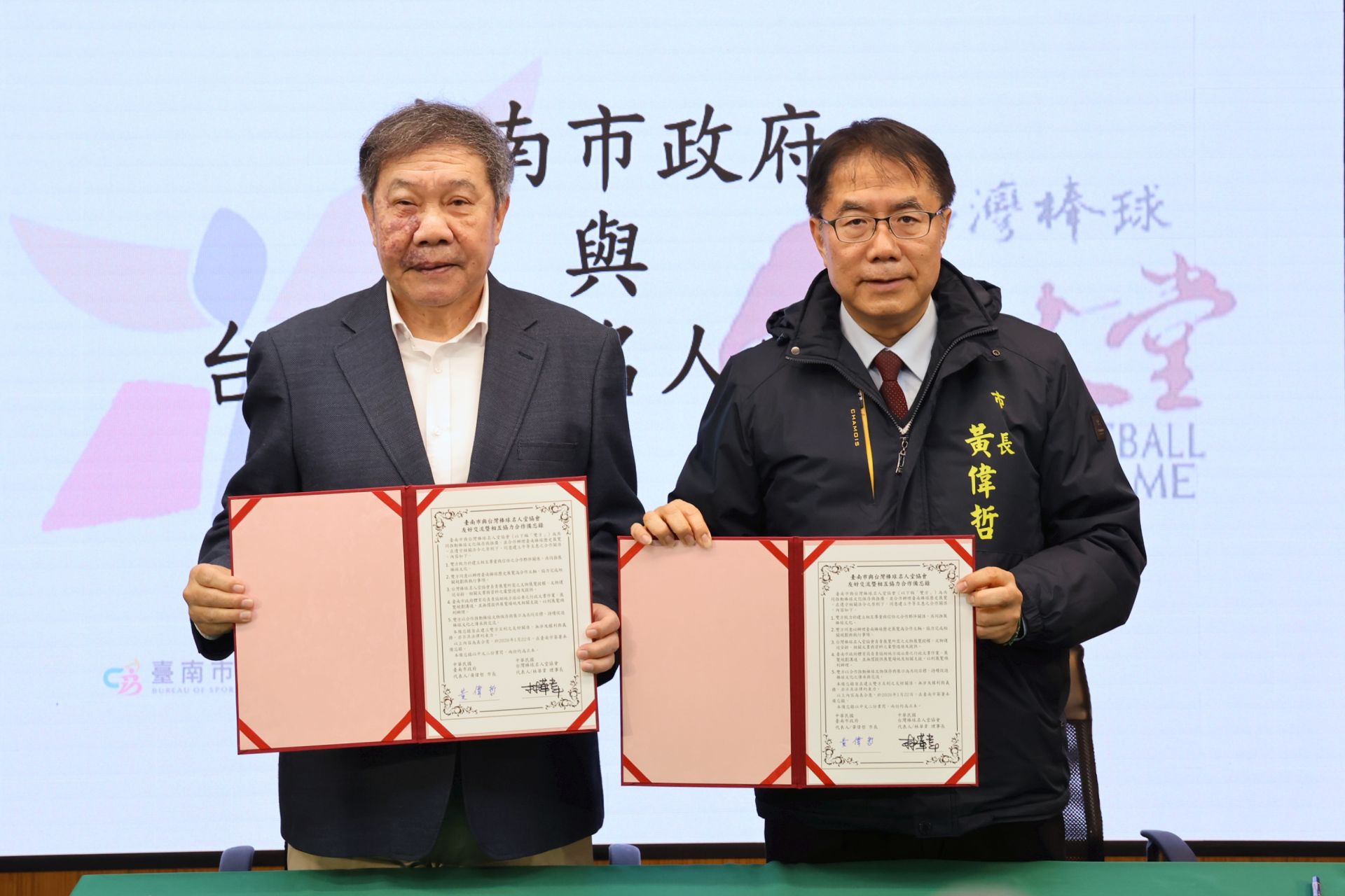 市長黃偉哲與台灣棒球名人堂協會理事長林華韋代表簽署
