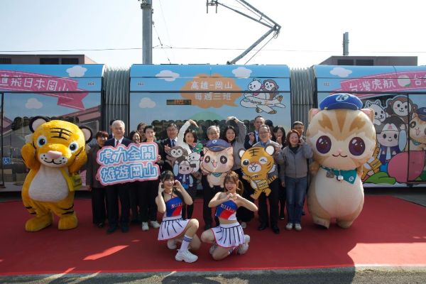 除了輕軌彩繪列車,這個春天,高雄捷運超人氣蜜柑站長化身旅遊嚮導,熱情邀請好朋友—台灣虎航的網紅虎將與岡山桃太郎君一同飛來高雄玩,共同展開「虎力全開・雄遊岡山」假期。預計自2月起連續兩個月,三位人氣角色將率先現身台灣虎航全航線客艙聯名公仔頭枕巾,陪伴旅客展開空中旅程;而自3月起,蜜柑站長也將帶領夥伴降落高雄,於高雄捷運小港國際機場站設置主題宣傳佈景,打造三隻公仔坐上座椅的趣味拍照場景,邀請往返機場的旅人與市民一同加入這趟台日友情之旅,從雲端一路玩到高雄城市日常,感受跨國觀光交流的滿滿活力與可愛魅力。於日本方面,則將於岡山縣著名交通工具—岡山路面電車,推出高雄旅遊景點彩繪列車,把高雄觀光魅力帶入岡山市民日常生活,透過空中與軌道串聯,持續深化台日觀光交流,邀請旅人一同展開春日精彩旅程。