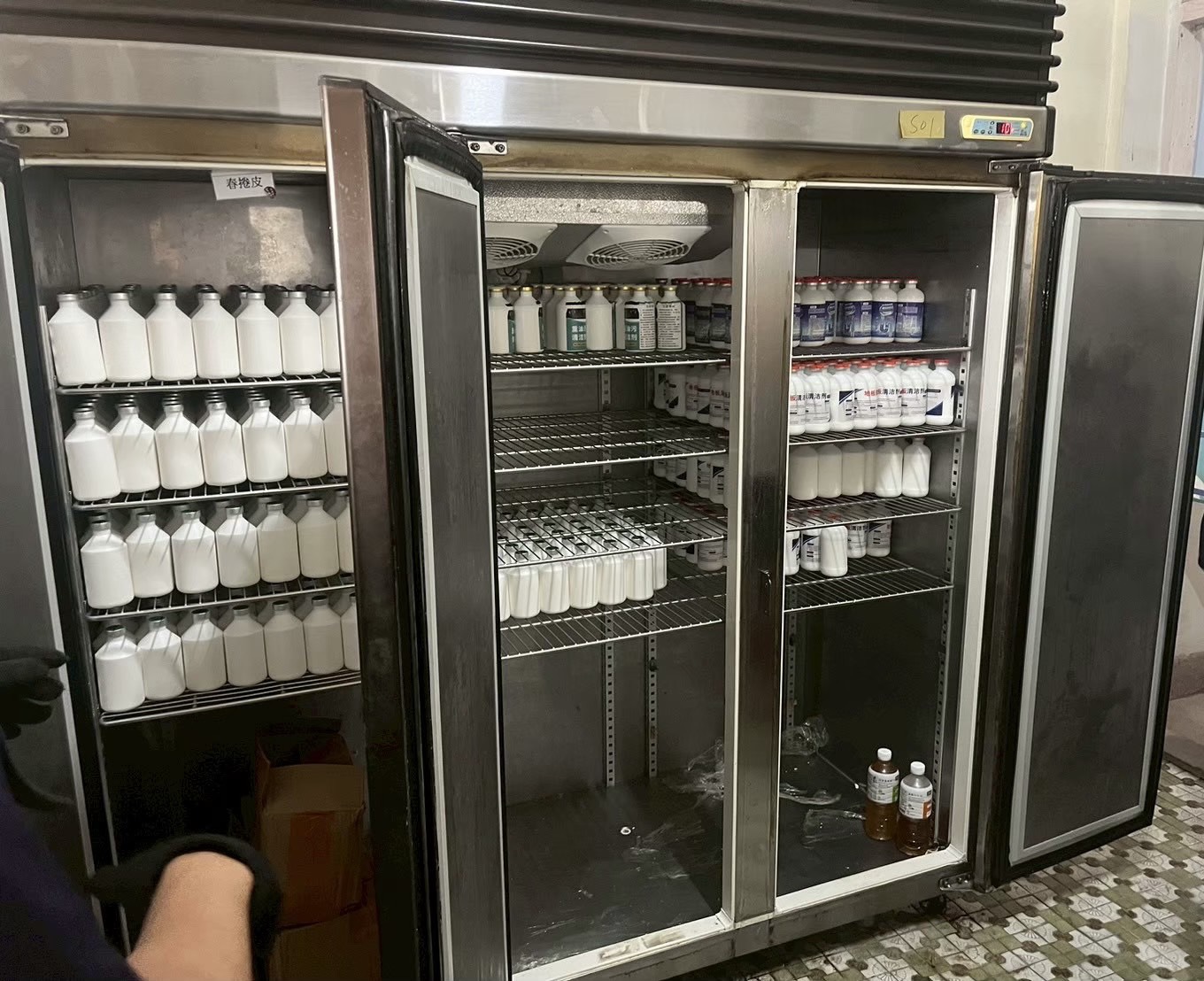 犯嫌將非法動物用疫苗放置於冰箱保存。翻攝畫面