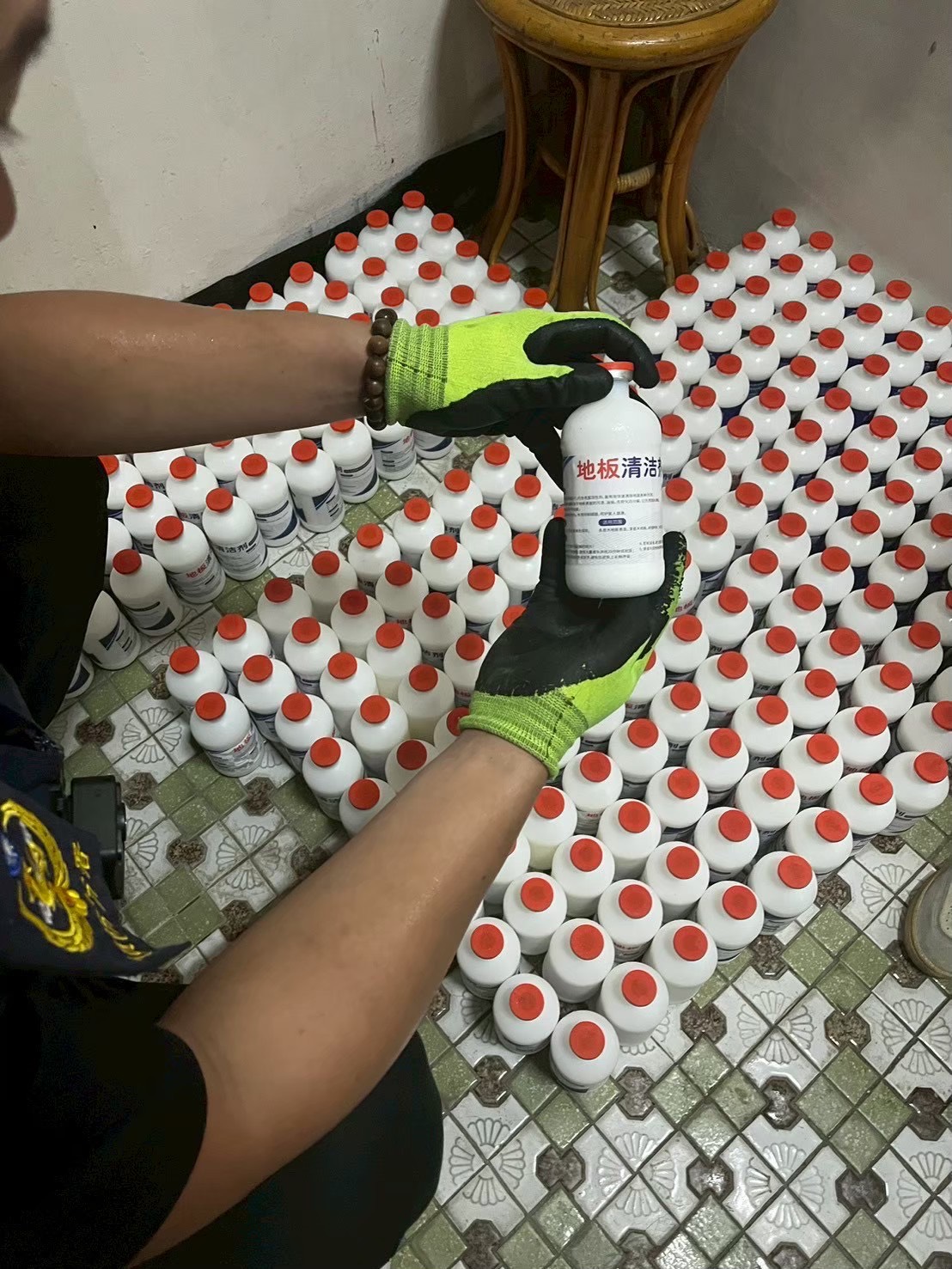 專案小組經長期蒐證與跨機關情資整合,發現劉男分別於民國114年2月20日及7月15日前某日,利用中國大陸空運包裹方式,以地板清潔劑名義刻意虛報貨品名稱,並結合中國大陸端物流供應鏈規避查緝,貨物入境後再透過國內大型物流平台分送各地貨運站交貨。專案小組掌握關鍵情資後展開行動,逮捕劉姓主嫌,查扣的黑心疫苗,若流入養殖業,可供約50萬隻家禽施用,由於該用藥成份不明,也未經檢驗,將危害我國動物防疫體系與公共衛生安全。