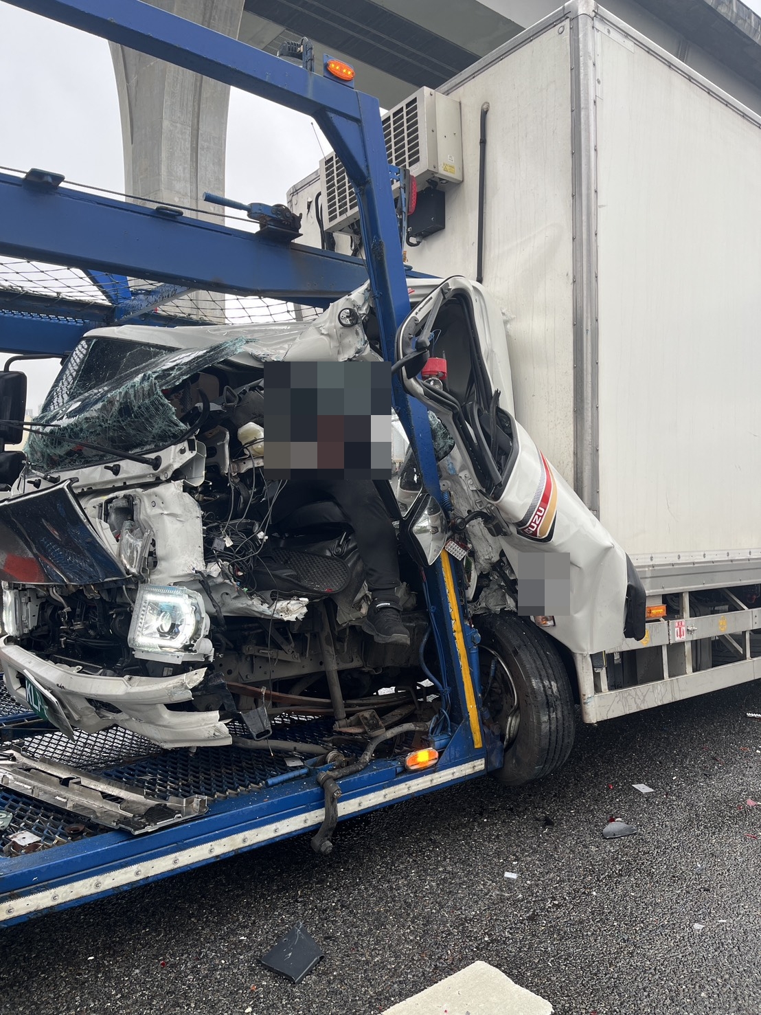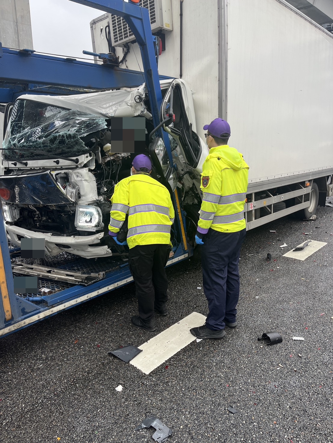 國道1號大貨車追撞拖車! 車頭撞爛駕駛受困救出受傷送醫
