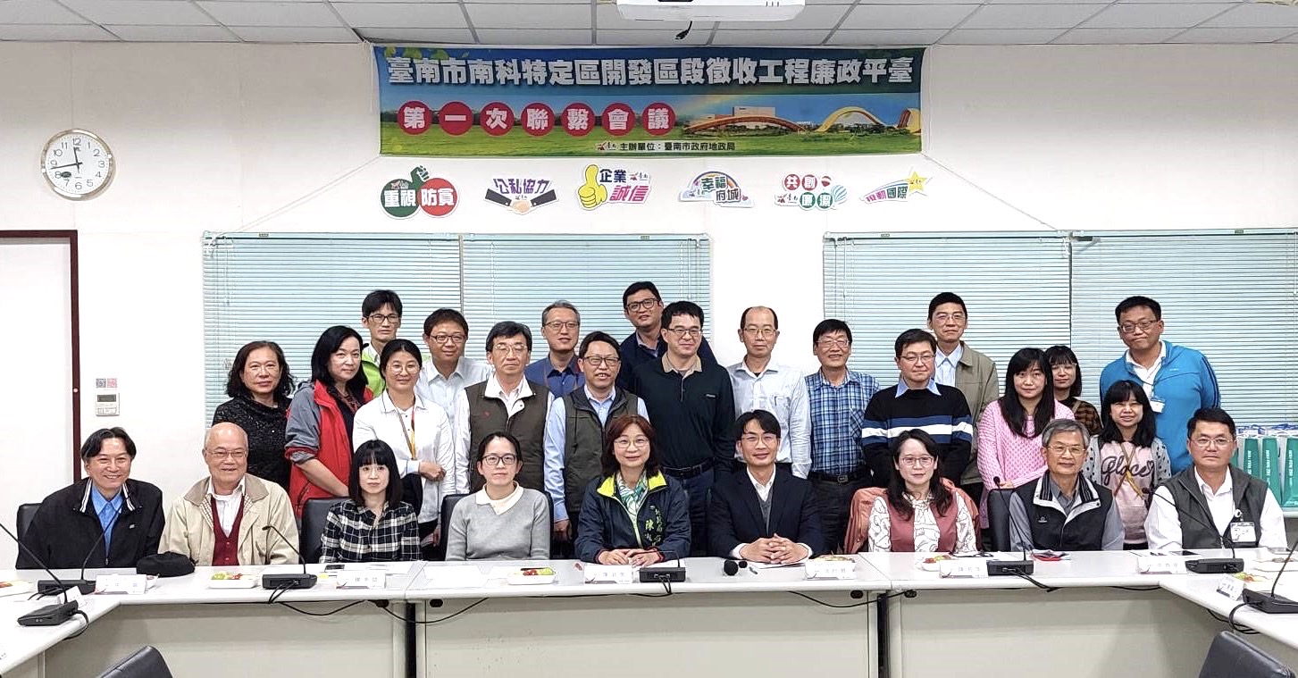 臺南市政府地政局於今日(02/24)上午10時於臺南地政事務所召開臺南市南科特定區開發區段徵收工程廉政平臺第1次聯繫會議,由地政局陳淑美局長親自主持,邀請法務部廉政署陳淑萍科長、臺灣臺南地方檢察署洪欣昇檢察官、臺南市政府政風處張堯星副處長、行政院公共工程委員會楊美娟科長、臺彎省水利技師公會賴丁甫技師、臺灣區綜合營造工程工業同業公會臺南辦事處曾新吉處長、台南市土木技師公會王琳理事、臺南市政府水利局、臺南市政府工務局、臺南市政府環境保護局及臺南市文化資產管理處等30餘人與會,本次會議就「目前辦理進度」及「可能遇見問題及策略探討」報告及意見交流,議題內容包含強化內控機制、針對「分區同時施工」研擬採購精進作為等,有效提升廉政平臺運作機制。