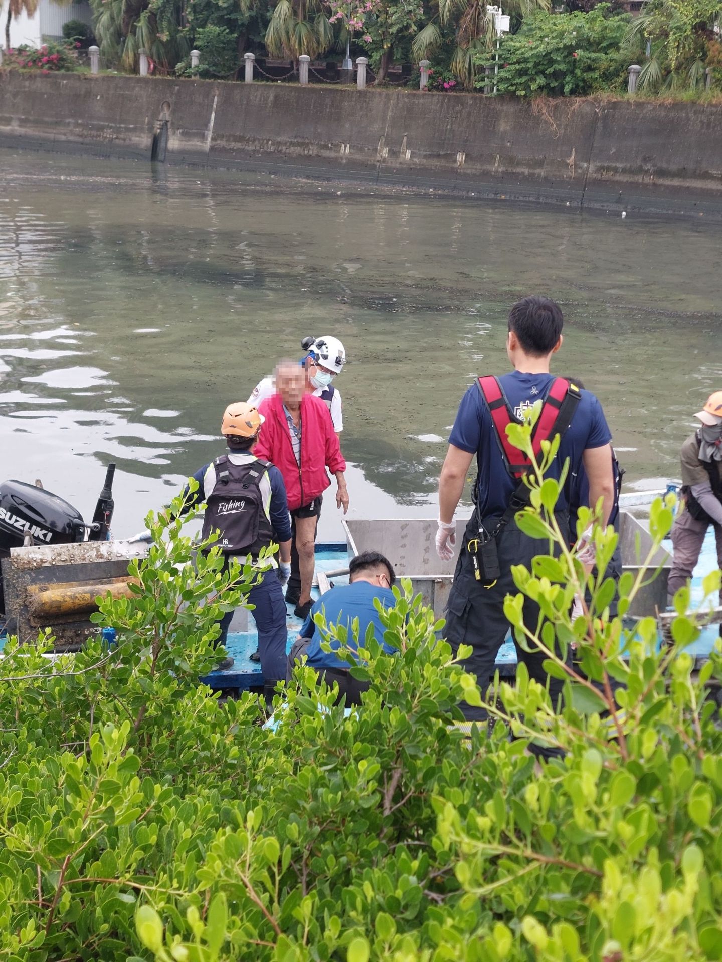 接獲通報後,警消迅速趕到現場,會同環保局清潔船展開救援。多方合力下,老翁順利被救上岸,隨即送醫檢查。幸好老翁並無大礙,僅受驚。